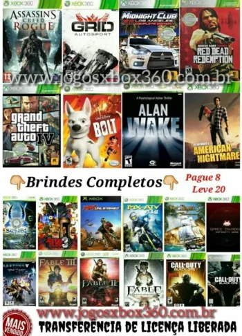 - COMBO 24 JOGOS jogo Xbox 360 Transferência de Licença Mídia Digital