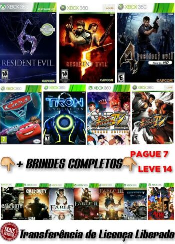 - COMBO 6 JOGOS COMPLETOS JOGO XBOX 360 Transferência de Licença Mídia Digital R$24,99
