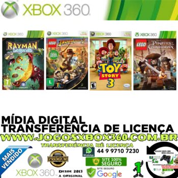 - TOYSTORY 3 + LEGO INDIANA JONES 2 + LEGO PIRATAS + Rayman Legends jogo Xbox 360 Transferência de Licença Mídia Digital R$79,90