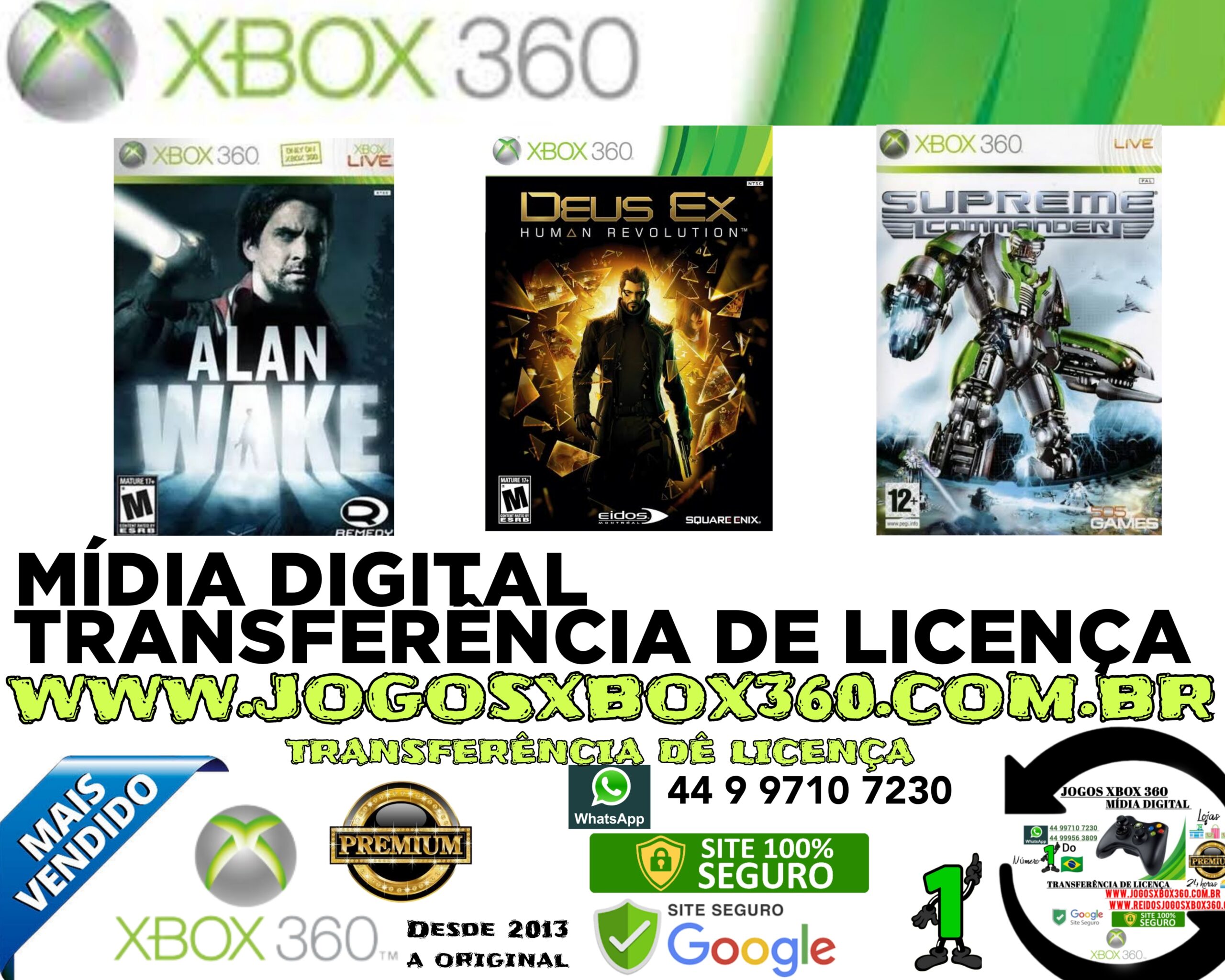 Jogos Xbox 360 transferência de Licença Mídia Digital procedimento transferência de Licença permite vc a jogar com qualquer perfil com ou a internet sendo instalado e feito procedimento corretamente jogo ficará no console e armazenamento licenciado se tratando de um registro de jogo original não poderá ser excluído após instalação!