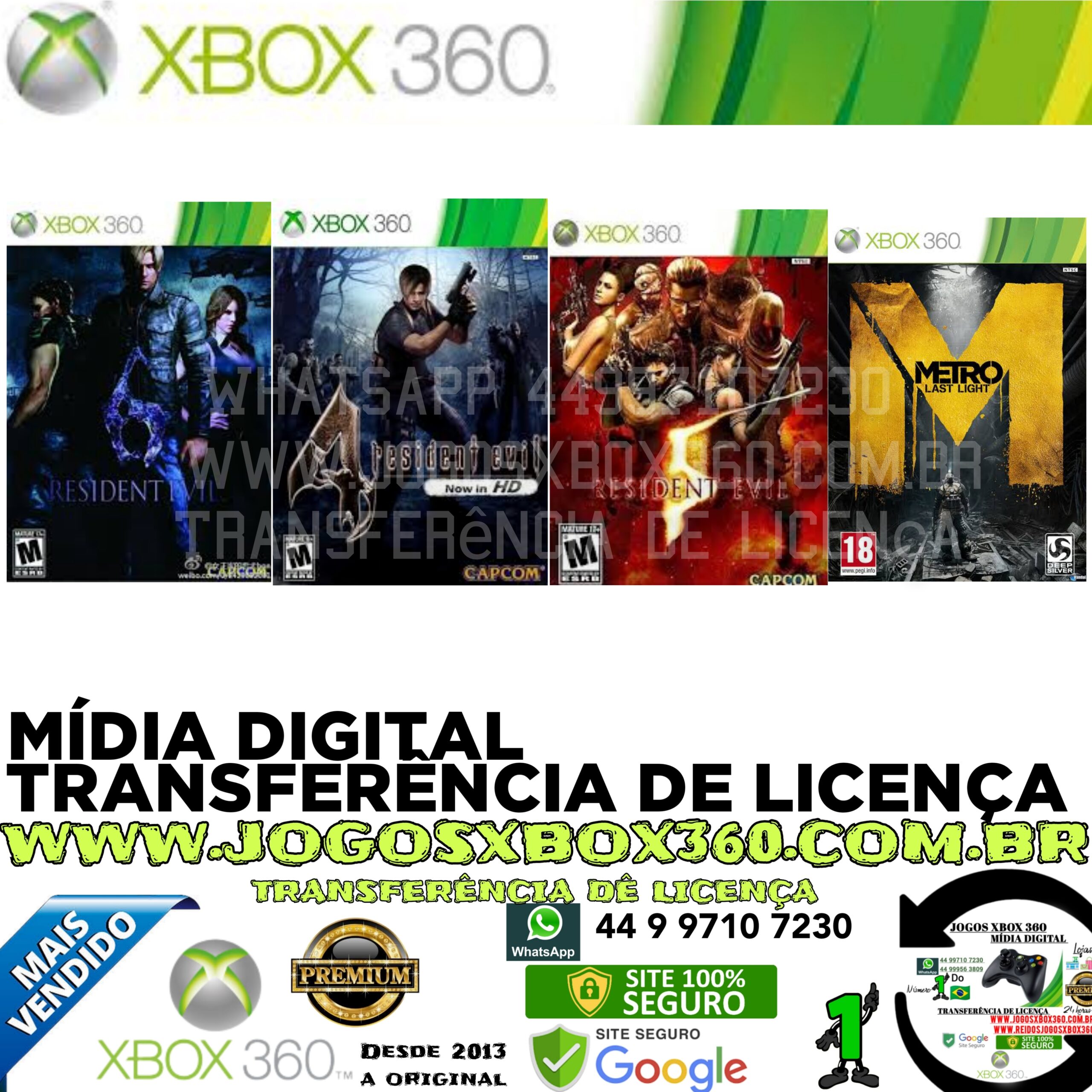 Resident Evil 6/5/4 + metro Last jogos Xbox 360 Transferência de Licença Mídia Digital