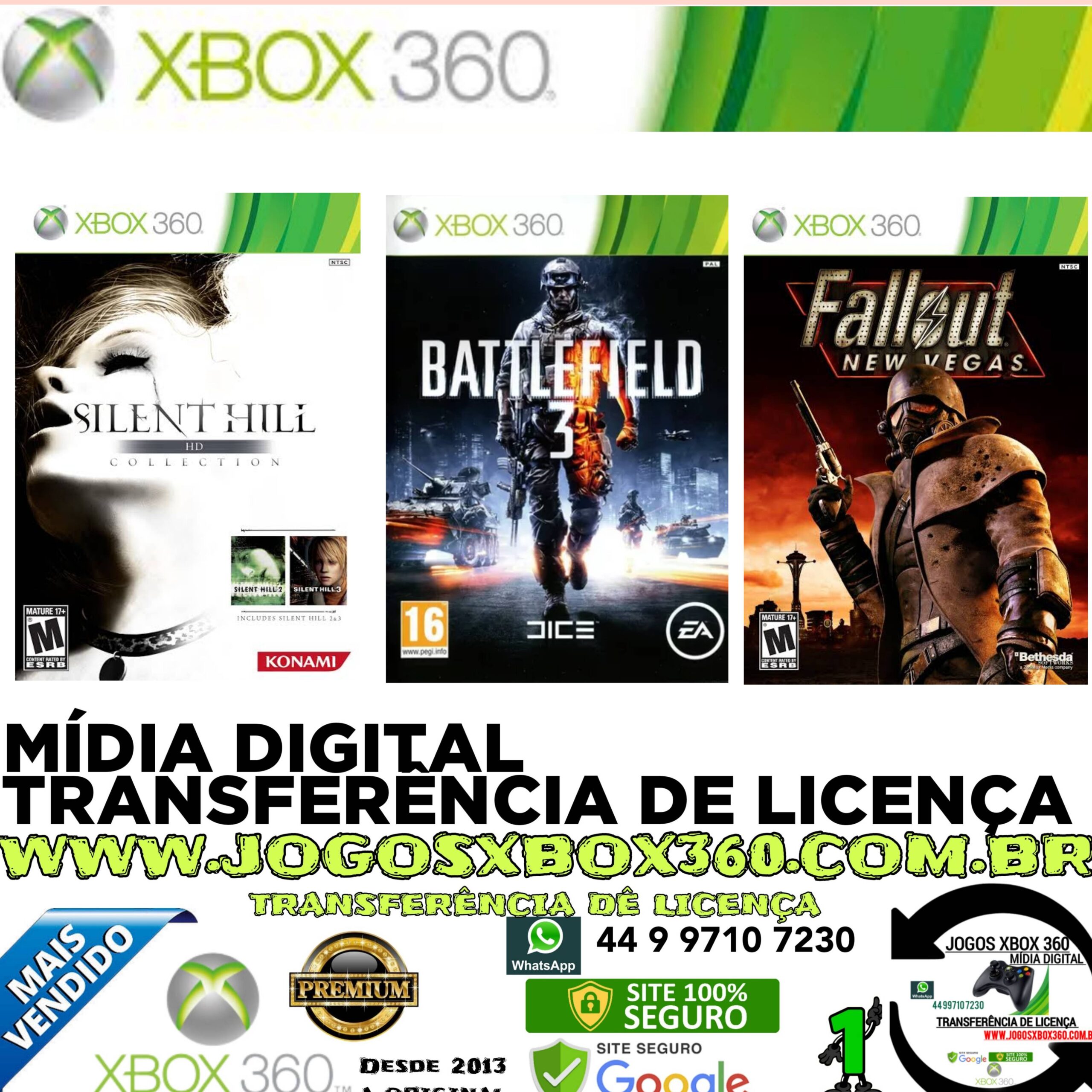Silent Hill + Battlefield 3 + Fallout New Vegas Xbox 360 transferência de Licença Mídia Digital